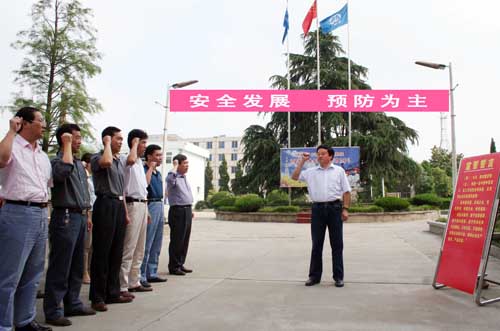 “今天,我郑重宣誓:我是一名中国中铁员工,我工作的安全和质量,关系到企业的发展和荣誉!我郑重承诺:忠诚企业、恪尽职守、珍爱生命、铸造精品!我坚决做到:遵守规章制度、遵守操作规程、遵守劳动纪律,不出事故、不出次品、不留隐患!我将以实际行动,确保企业生产安全、产品优质!”6月1日,在总经理徐毛宏的领誓下,公司机关全体员工对安全质量进行了宣誓,标志着公司2010年安全生产月活动正式拉开帷幕。
