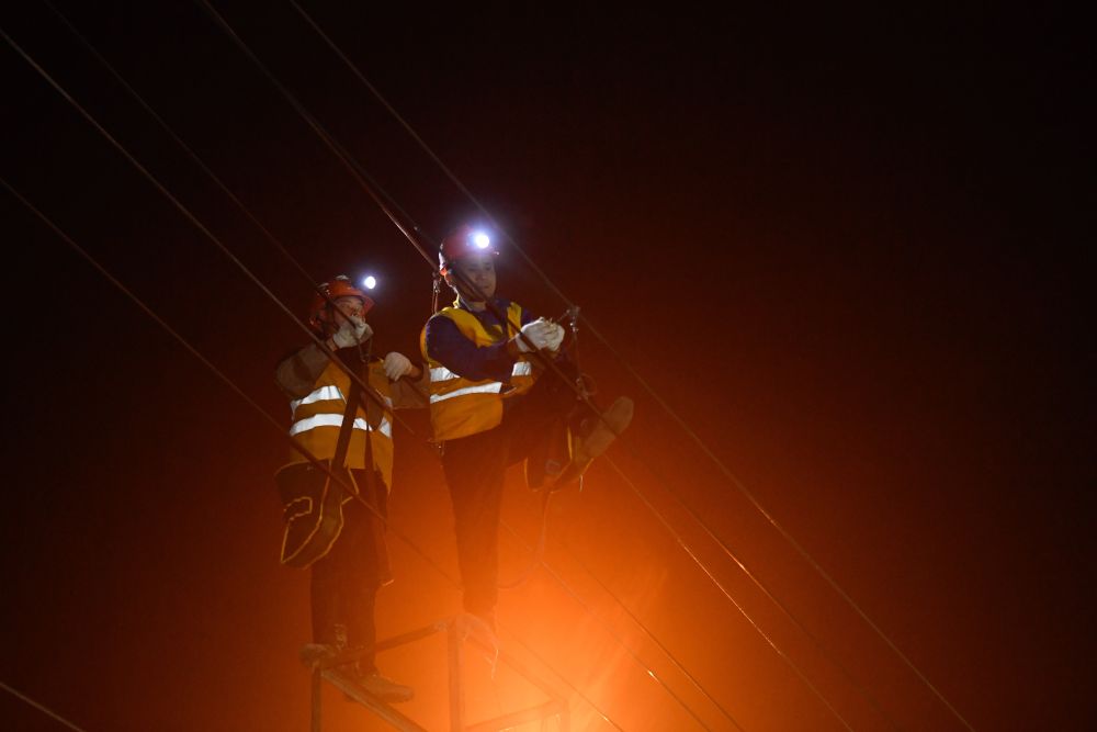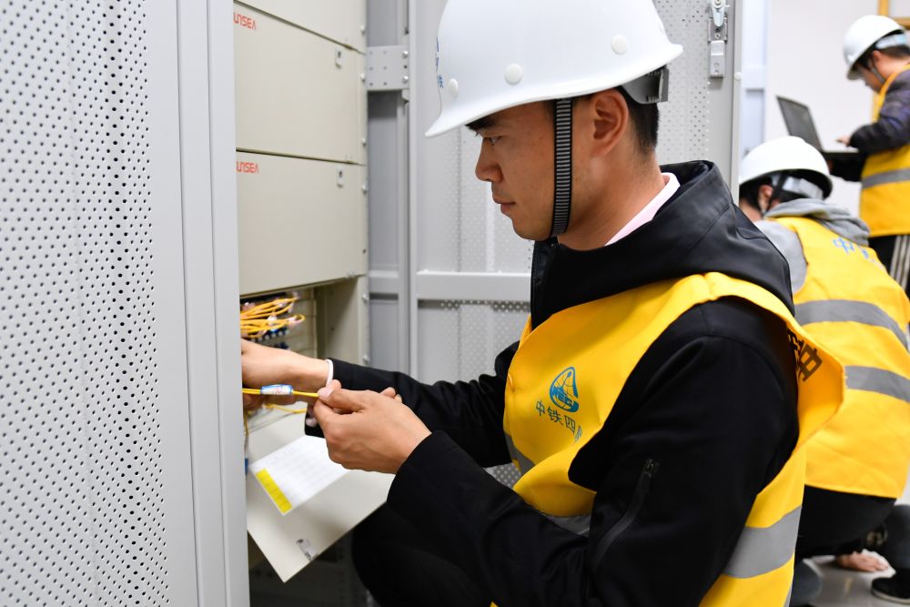 ↑4月13日,中铁四局技术人员在嘉兴站信号楼安装通信信号设备。