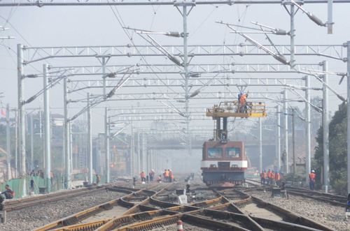 在2个月的施工中,施工人员完成基础浇注476处、支柱组立372根、软硬横跨组装70组、吊柱安装129组、支柱装配742组,架设接触线36公里,完成箱式分区所1所。此后,施工单位将对全线接触网进行精调,并按照节点工期要求陆续进行冷滑和热滑试验,以满足6月30日全线竣工通车的工期目标。(通讯员 李欣浩)